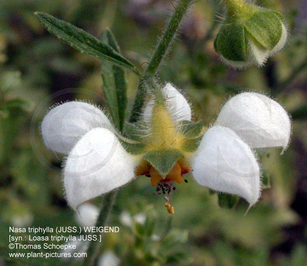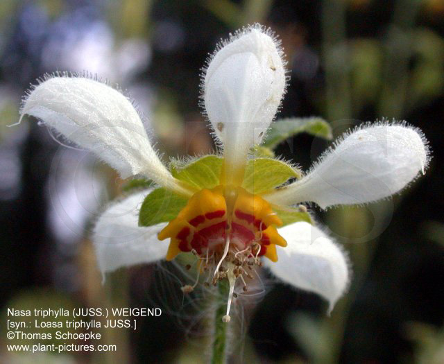 (whole plant) Nasa triphylla - Cultivated, at Botanical Garden of Goettingen, Lower Saxony, Germany (flower) Nasa triphylla - Cultivated, at Botanical Garden of Goettingen, Lower Saxony, Germany (flower) |